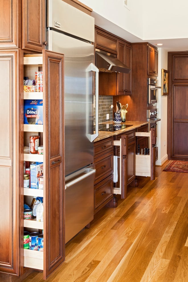 The new design maximizes the kitchen, adjacent living room and dining room living space, as well as, offering the owners a more spacious and efficiently pointed master bath.