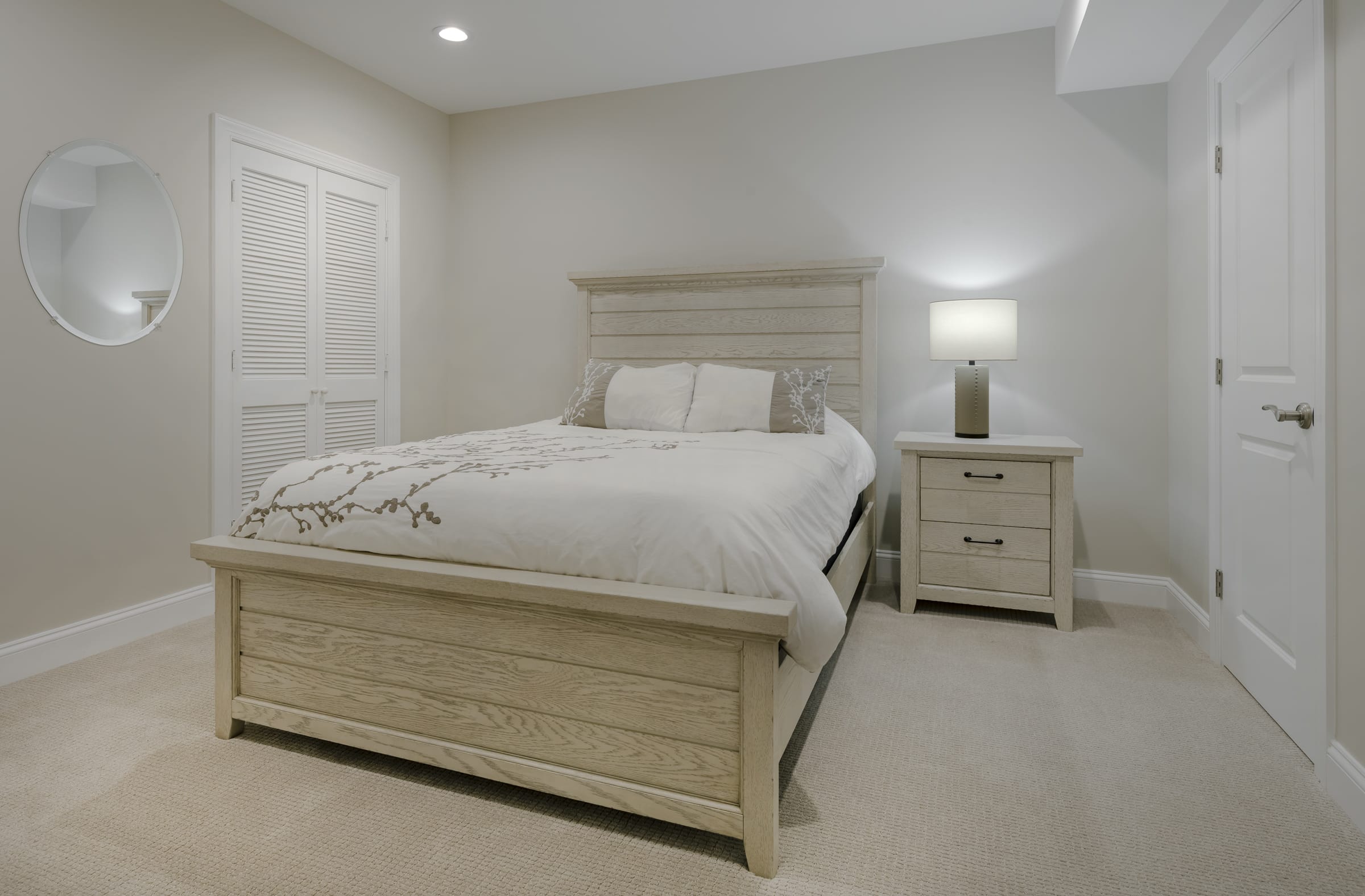 A guest bed and bath are available for visiting family and friends on the opposite side of the apartment. The study or home office is in this same area, allowing guests to have a separate living space. Not many in-law apartments offer such amenities, especially in a basement. Nothing about this apartment speaks to being in a basement. It gives the couple a pleasant place in which to enjoy retirement.