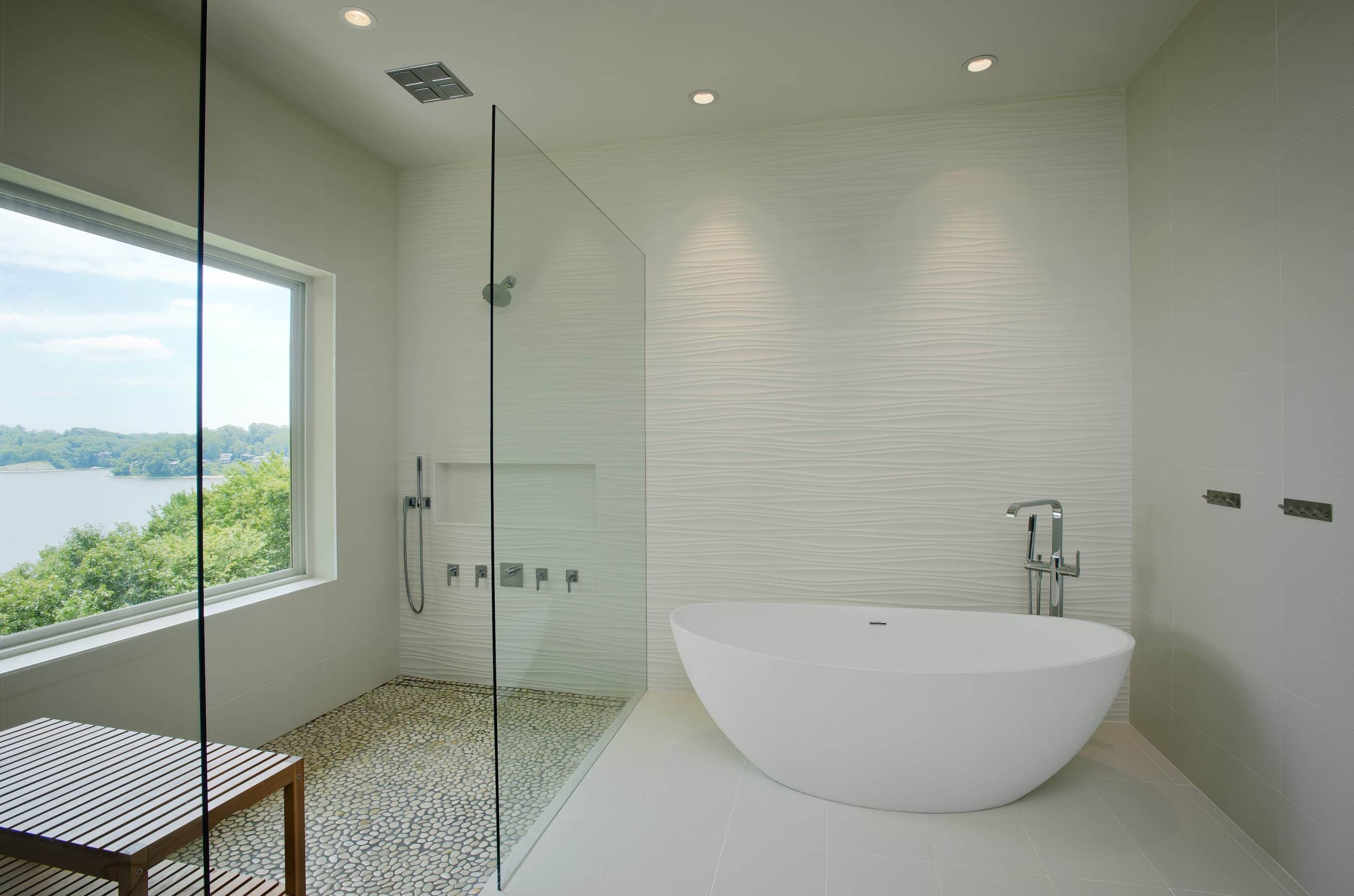 Owings Brothers redesigned and renovated this master bathroom as part of a whole-house remodel for this waterfront home.