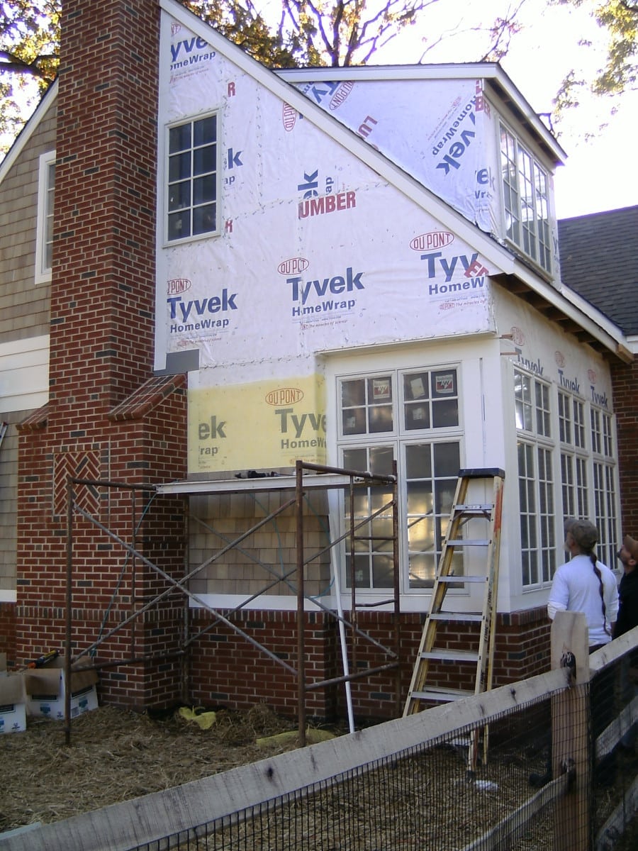 The existing exterior of this Cape Cod was completely brick with two large bay windows as it’s focal point. This two-story addition not only anchors the right side of the house but introduces new lines and sophistication. Adding this new sunroom offers a family gathering space filled with light. The combination of matching dormers, a large masonry fireplace which flanks the house’s opposite existing fireplace, and the introduction of shingle- style layer exterior trim provides for a flowing and appealing exterior.