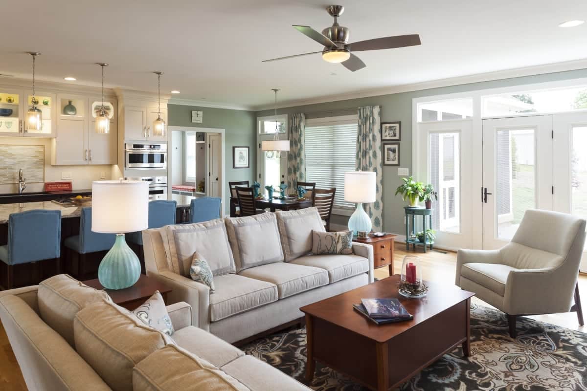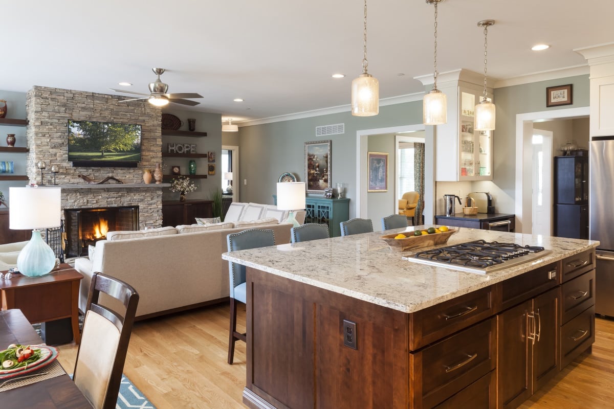 This Design-Build Project for a custom home in Carroll County has a first-floor master suite, two-car garage, screened rear porch, covered front porch, fully finished basement, rear hardscape with seating walls, and fire pit. The couple desired to age in place and had a home built and designed by Owings Brothers with accessible first-floor living when they were not able to find an existing home with this capability in their desired area. Owings Brothers 24/7 communication system allowed this busy couple to make selections, pose questions, keep up to date with timelines and stay abreast of the financial impact of changes and decisions.