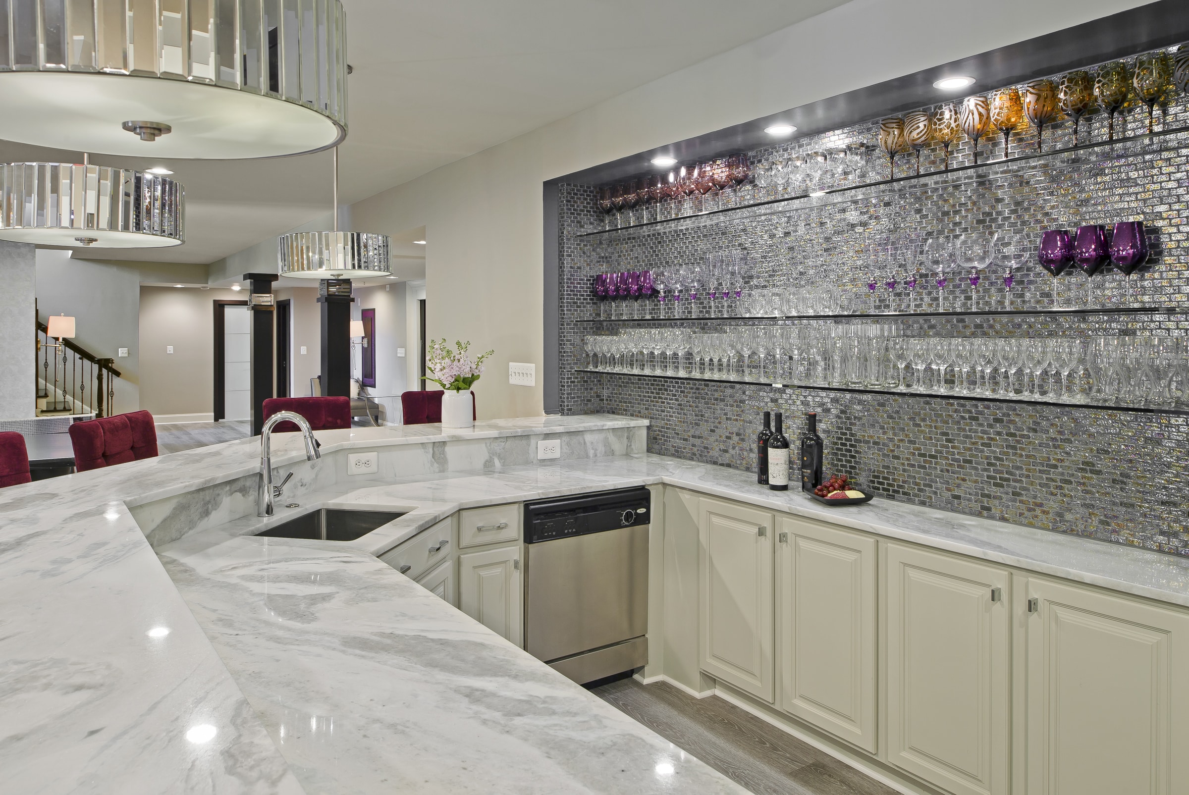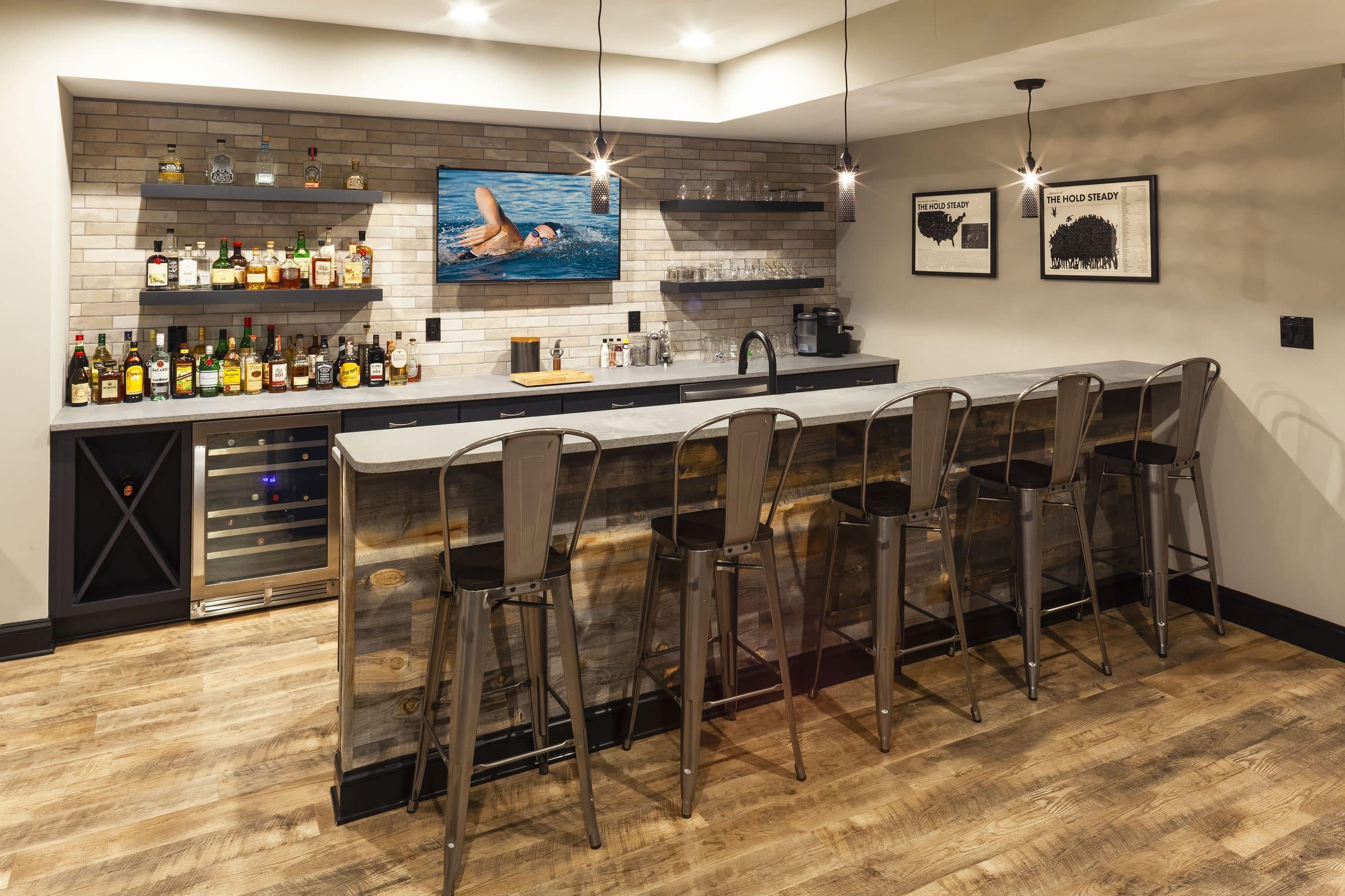Wet or Dry Bar: This is all about the sink. Do you want a sink in your home bar that will allow for easy cleanup? By planning for a sink you can create a great prep area for entertaining and serving appetizers as well as cocktails. Choosing a dry bar will require running to the kitchen and if it’s not located on the same floor it could be inconvenient. Of course, where you already have plumbing will need to be a factor in location choice.