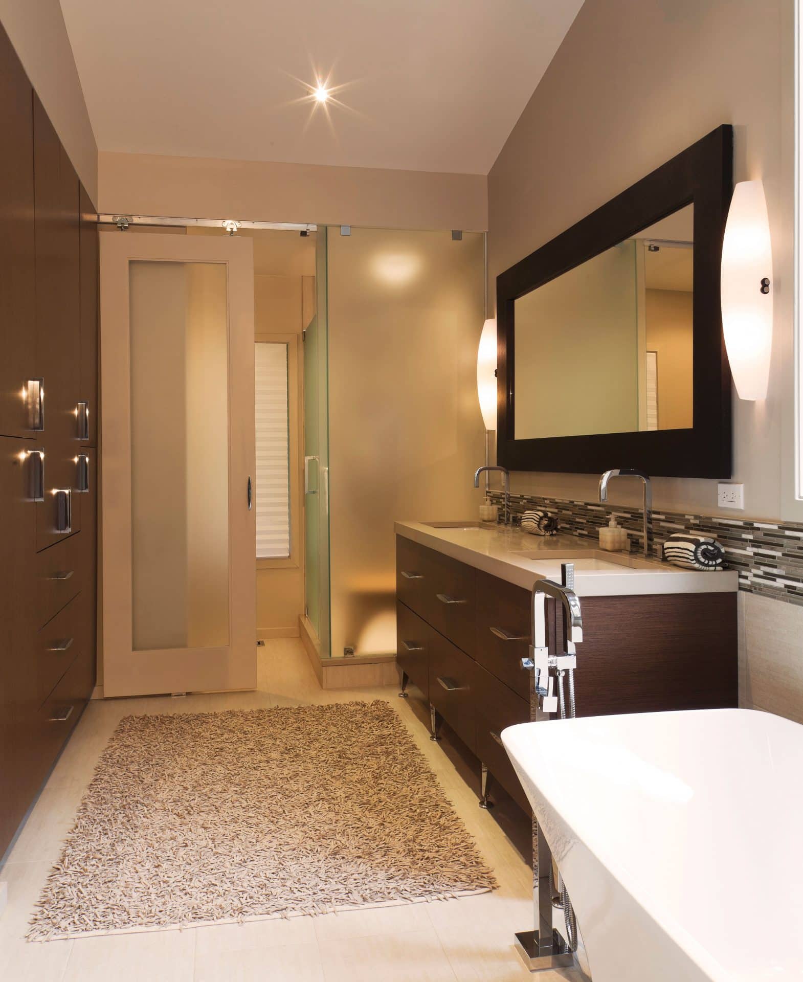 - Eliminating the door swing makes sliding doors space-saving.