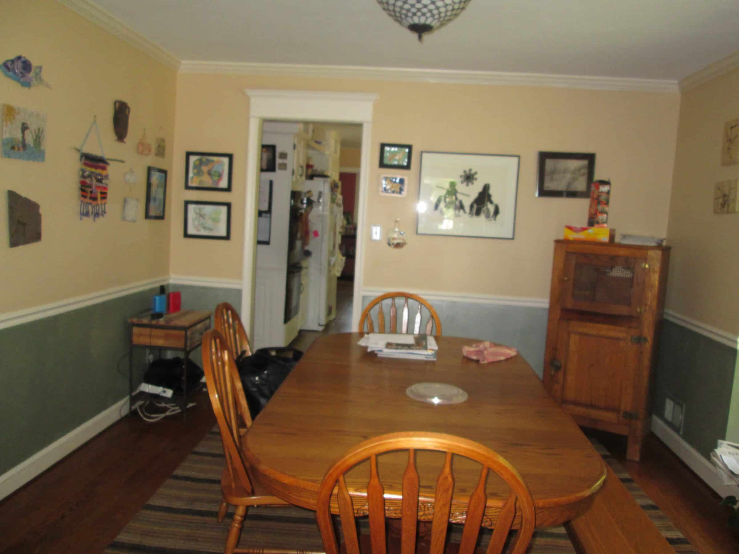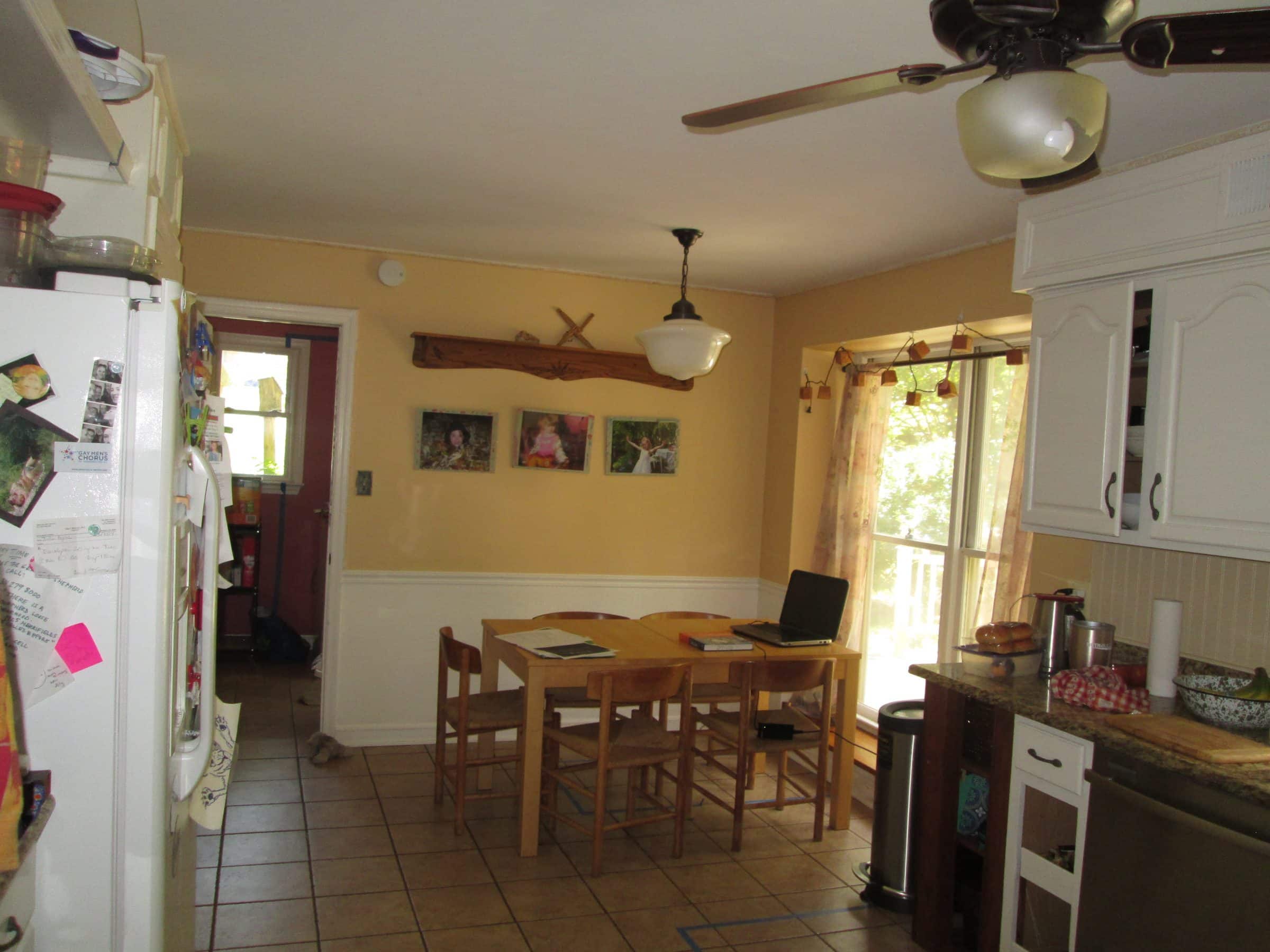 As you can see by these photos the walls made rooms seem dark and small. By incorporating them with the new kitchen remodel we were able to expand the look of the rooms as well as the kitchen and yet keep the spaces separate and distinct. The mudroom was updated with a new slate floor and a new exterior door to the deck with a full glass door and sidelights. See the beautiful sunlight pouring into the entire space!