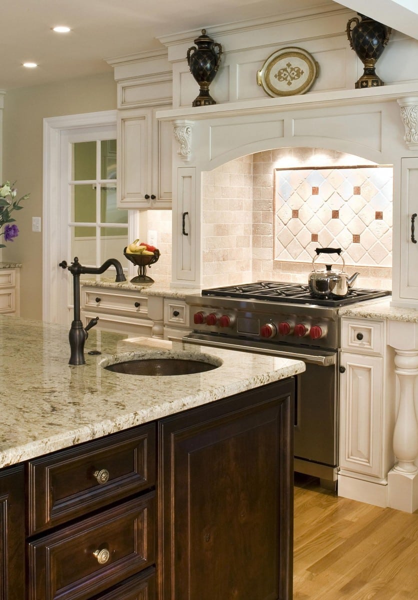 Sink choices include under-mount, drop-in and apron sinks. The difference between these various sinks is the installation method. The under-mount style is easier for clean-up than the drop-in. The drop-in sink style has a rim that sits on top of the counter, which can require more maintenance. Lastly, the apron or farm sink sits upon the cabinet and under the countertop. The front of the sink is visible and clean up is fairly easy since there isn’t a rim atop the counter. The under-mount sink has been a popular choice for years, but the apron or farm sink is gaining momentum.