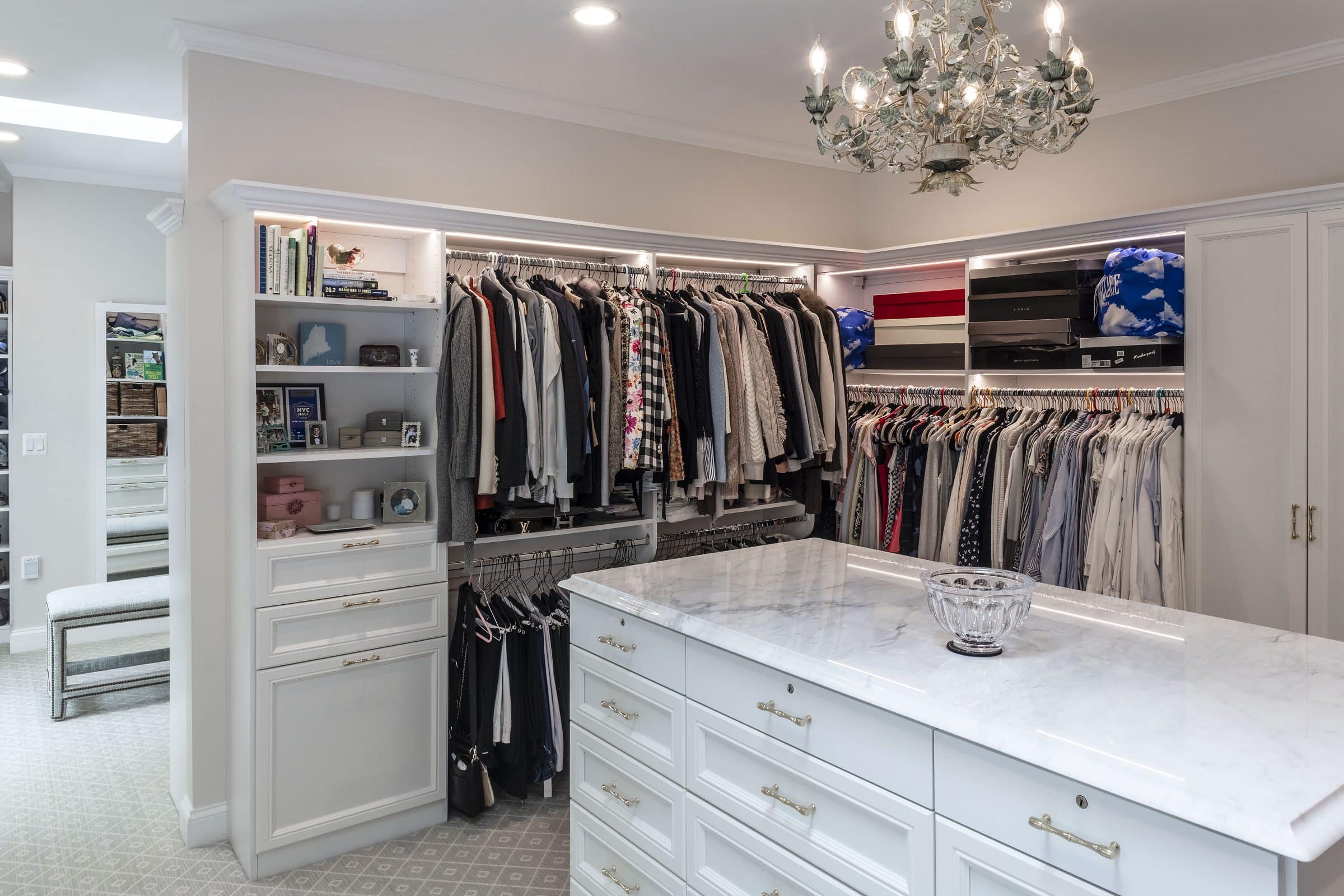 Would you like to have a custom closet for your master suite? Our designers create each closet with your particular needs in mind. This closet was being installed into a new addition to the home located above the garage.