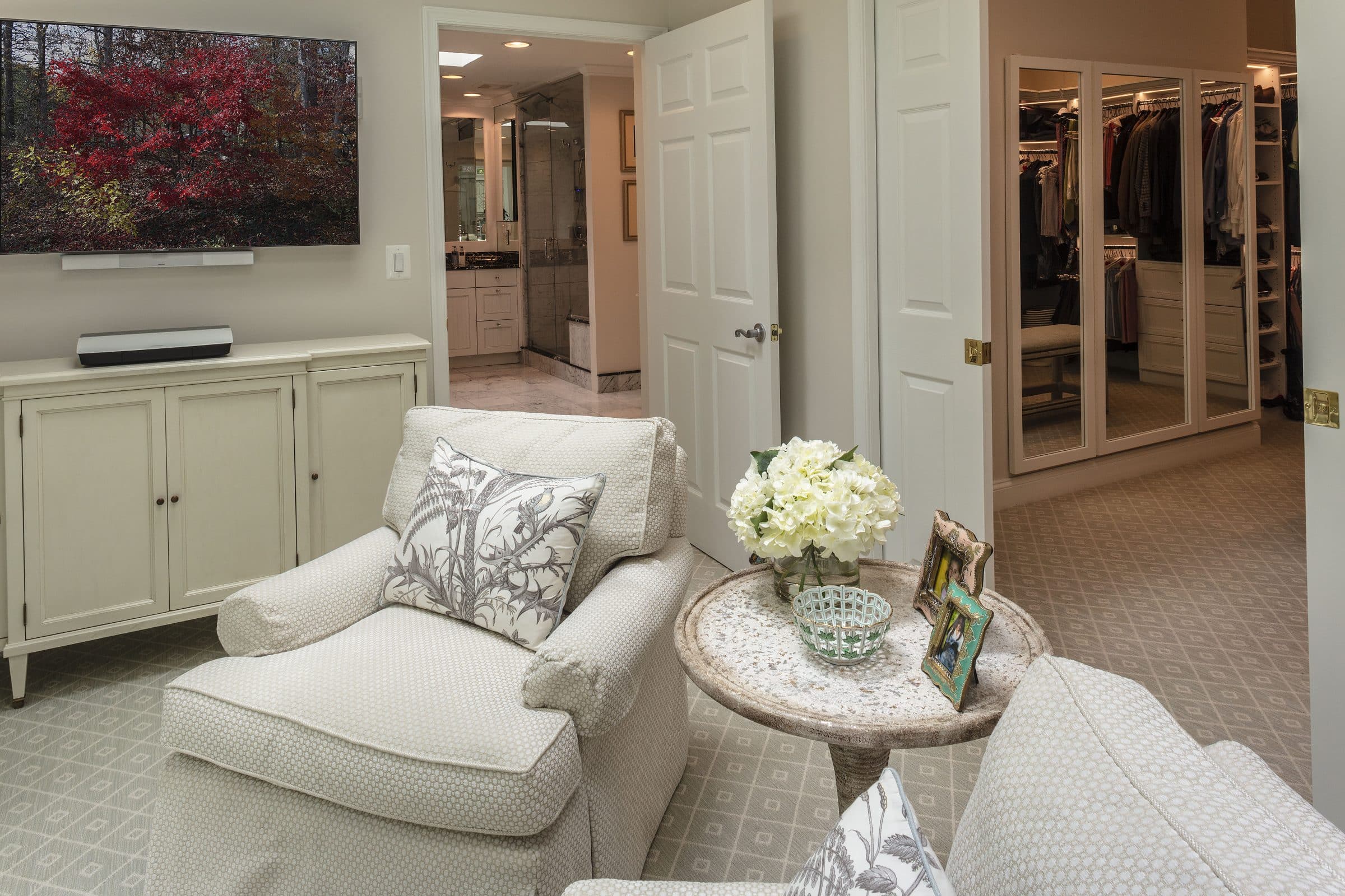 Our clients not only created a new master walk-in closet but also added a sitting room with an adjoining deck. The property backs up to a wooded area that gives the couple privacy as they lounge in their master suite retreat. A coffee/wine bar was also added completing their private retreat space. Our interior design team can create the haven you have always wanted. Give us a call and let us design the perfect master suite retreat for you!