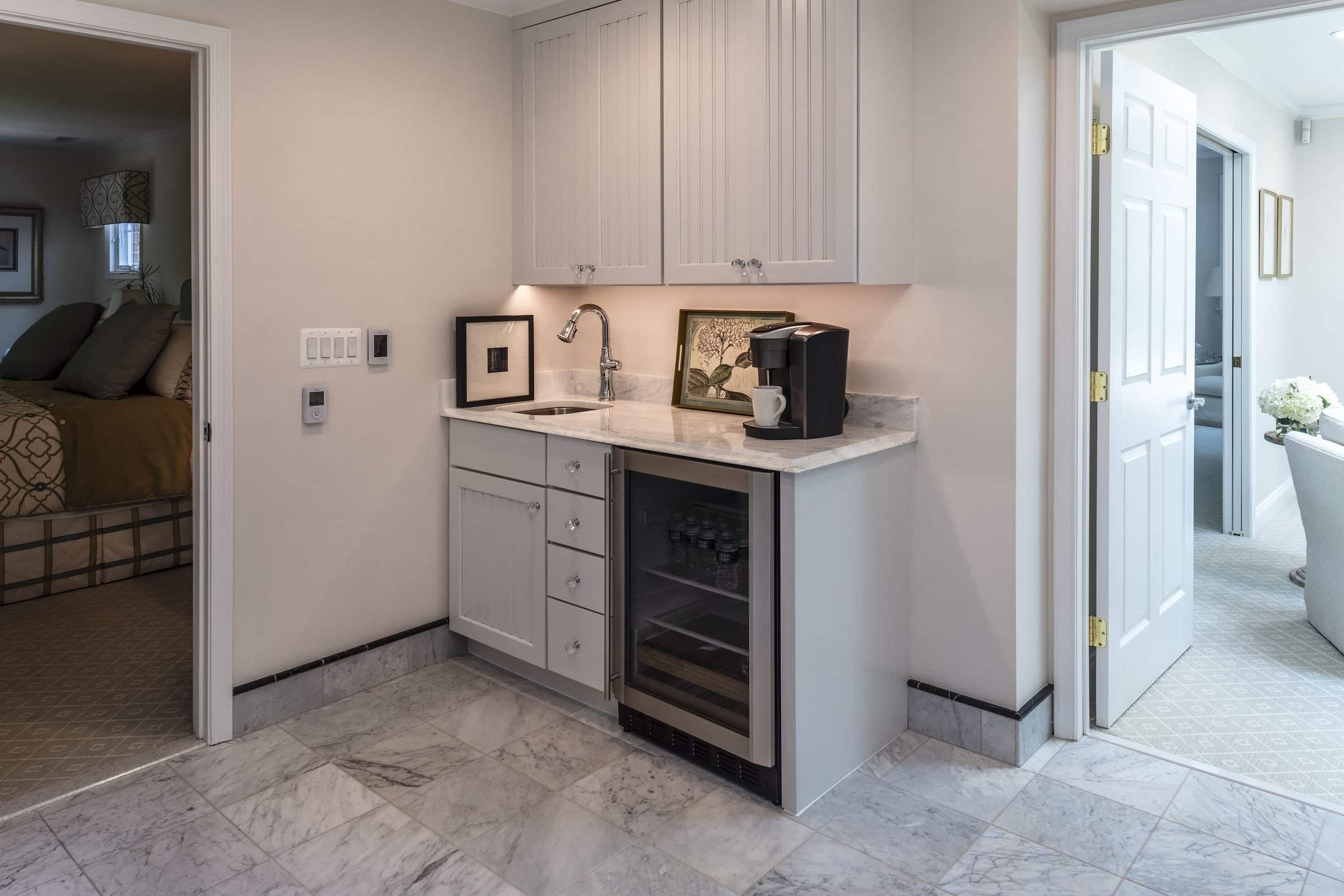 - Coffee/Wine Bar is located in the master suite adjacent to the sitting room and bedroom area and provides a cup of coffee in the morning or a glass of wine on romantic evenings.
