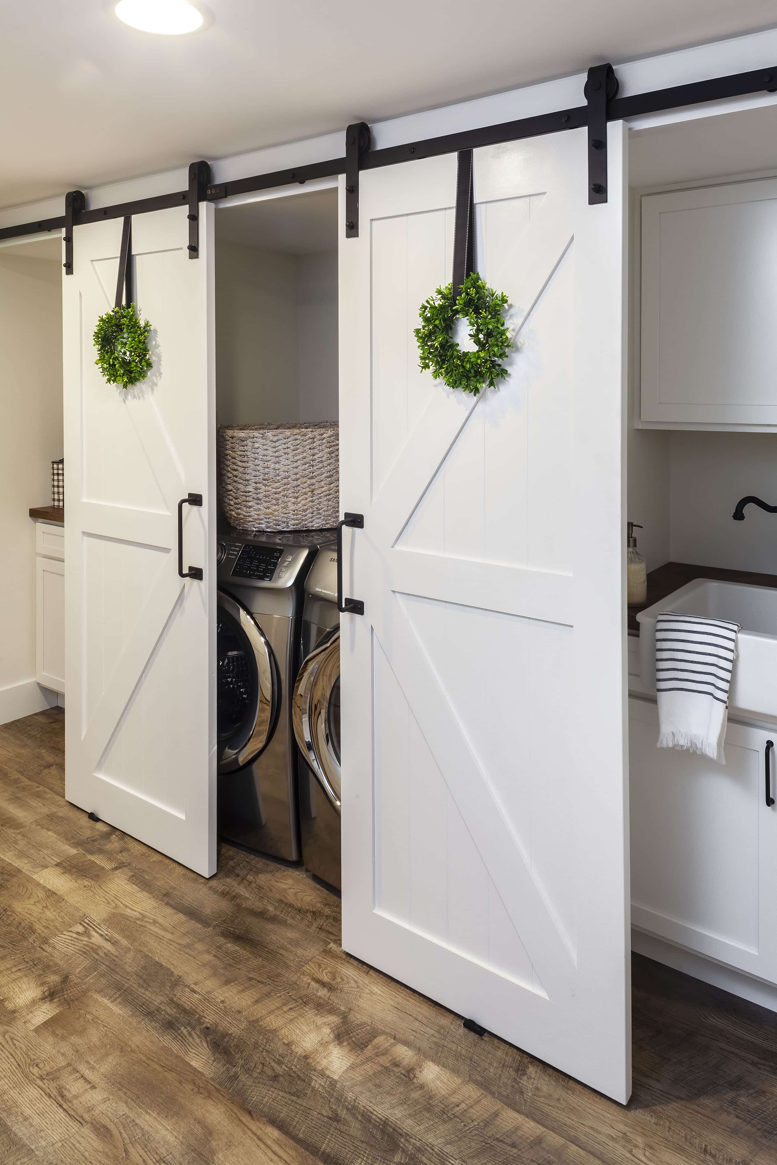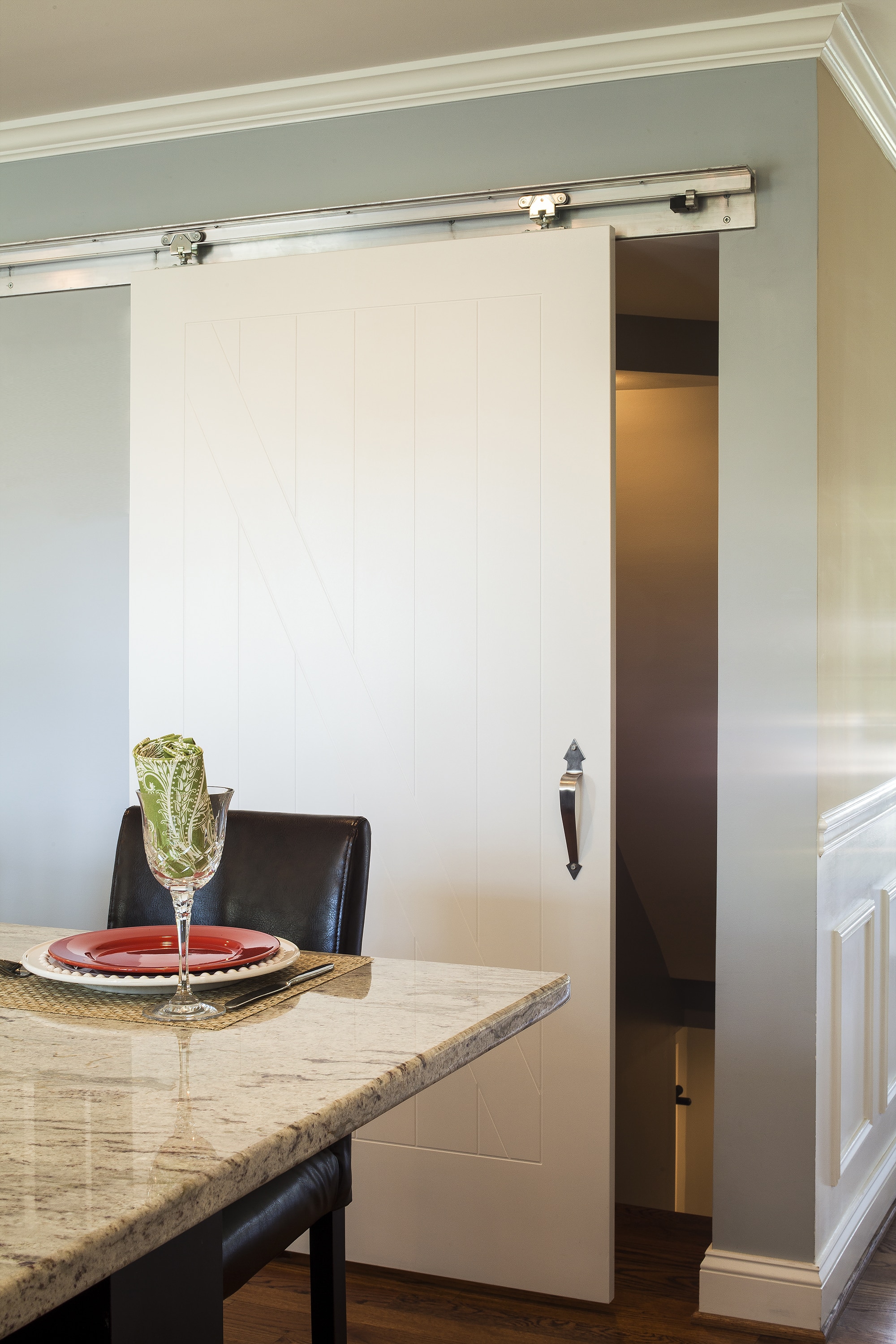 One trendy design choice for a cramped, limited space can be a barn door. The traditional swinging door will typically need nine feet or more to function. In a limited space, nine feet for a door can be a waste of space. A sliding barn door can be just the solution. No space is needed on the inside of the room allowing design space for the room’s intended purpose. You do need to consider the adjacent wall space outside of the room for the door to slide when opened.