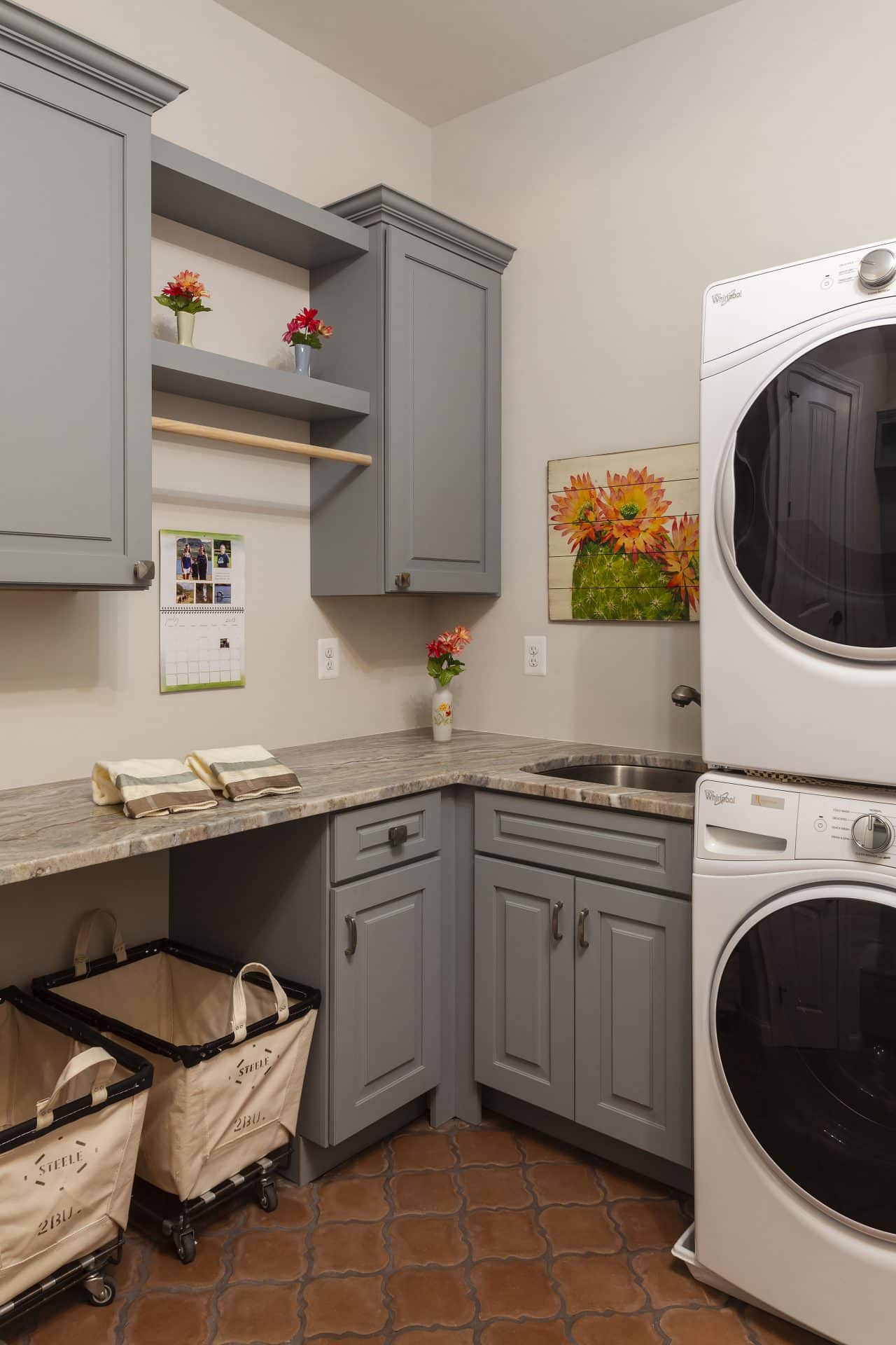 Having a laundry room in the mudroom or adjacent to it will save time and energy and eliminate running wet and dirty athletic clothing from another part of the house. With the washer and dryer close by all the clutter of kids wet snowy gear can be immediately dropped into the washer for laundering. If you have room for a folding table you can move everything in one fell swoop to the individual bedrooms and keep the clutter down.
