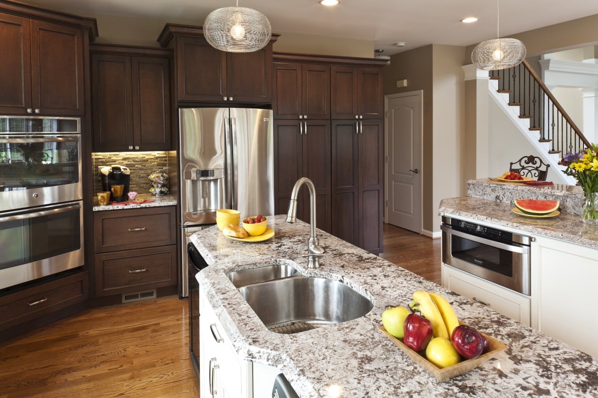 This project started as a large kitchen renovation, but ended in being a partial first floor renovation to truly meet the homeowner’s requirements. The removal of the 2 story fireplace created great traffic flow for busy owners and for entertaining guests.