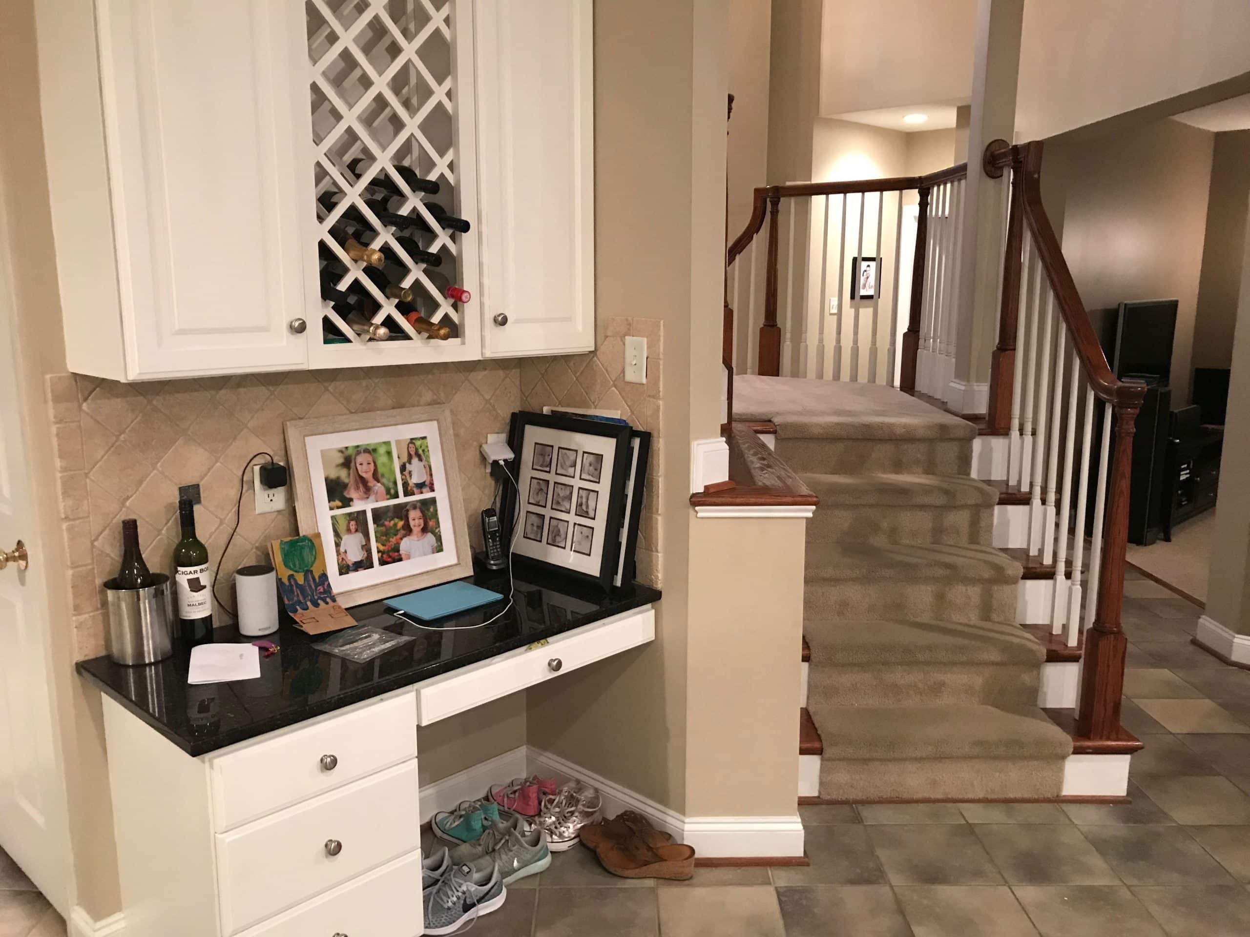 This relatively new home built in 2003 still needed some tweaking to fit the bustling lifestyle of this very busy family of six. With four little girls that are very active in various hobbies and school they needed to make their living space more “family friendly”. An open concept was decided including the removal of an obtrusive staircase. See Staircase Design Ideas.