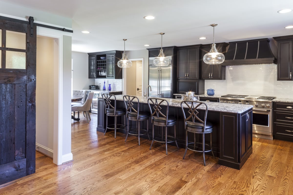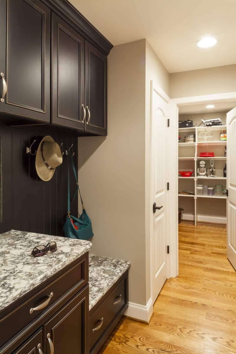 This homeowner wanted a larger kitchen with gourmet appliances for cooking up their favorite recipes. The architect was able to find all the space they needed without adding an inch to the footprint of the home. How? The 3rd bay of the garage was incorporated into the layout of the mudroom, laundry room, pantry and kitchen reconfiguration.