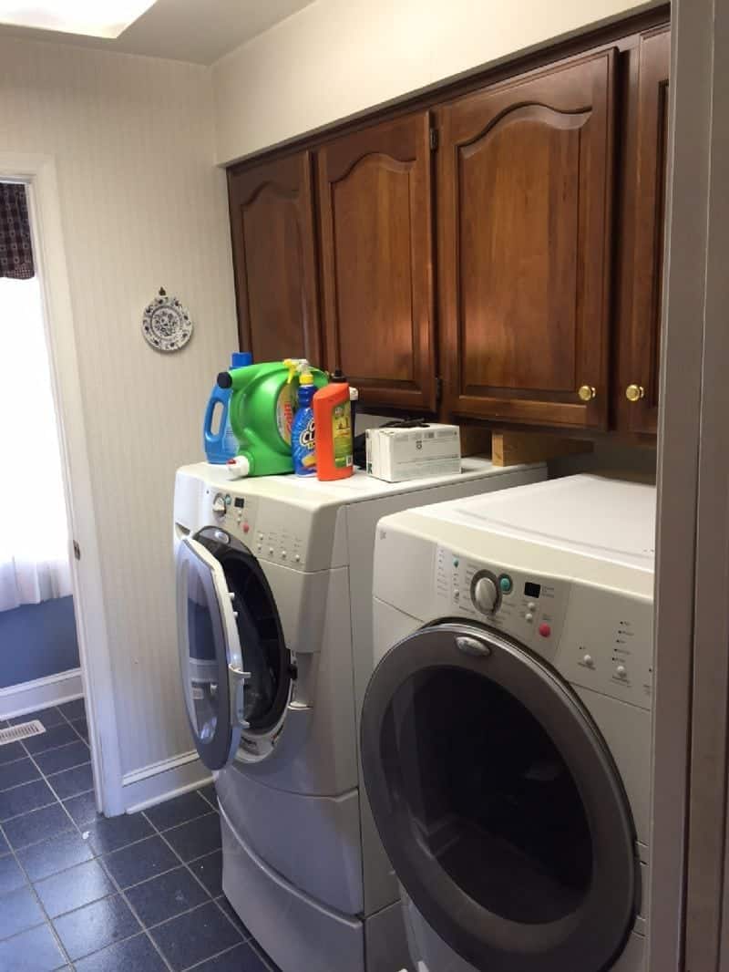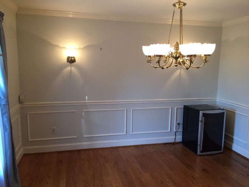 The kitchen was painted and the floors refinished in the dining room and kitchen. New floors laid in the hall, mudroom, drop zone, powder room, laundry and pantry. New shelving, cabinets and vanity in powder room were also included. Truly an interior first floor remodel that completely changes the look, feel and function of the space.