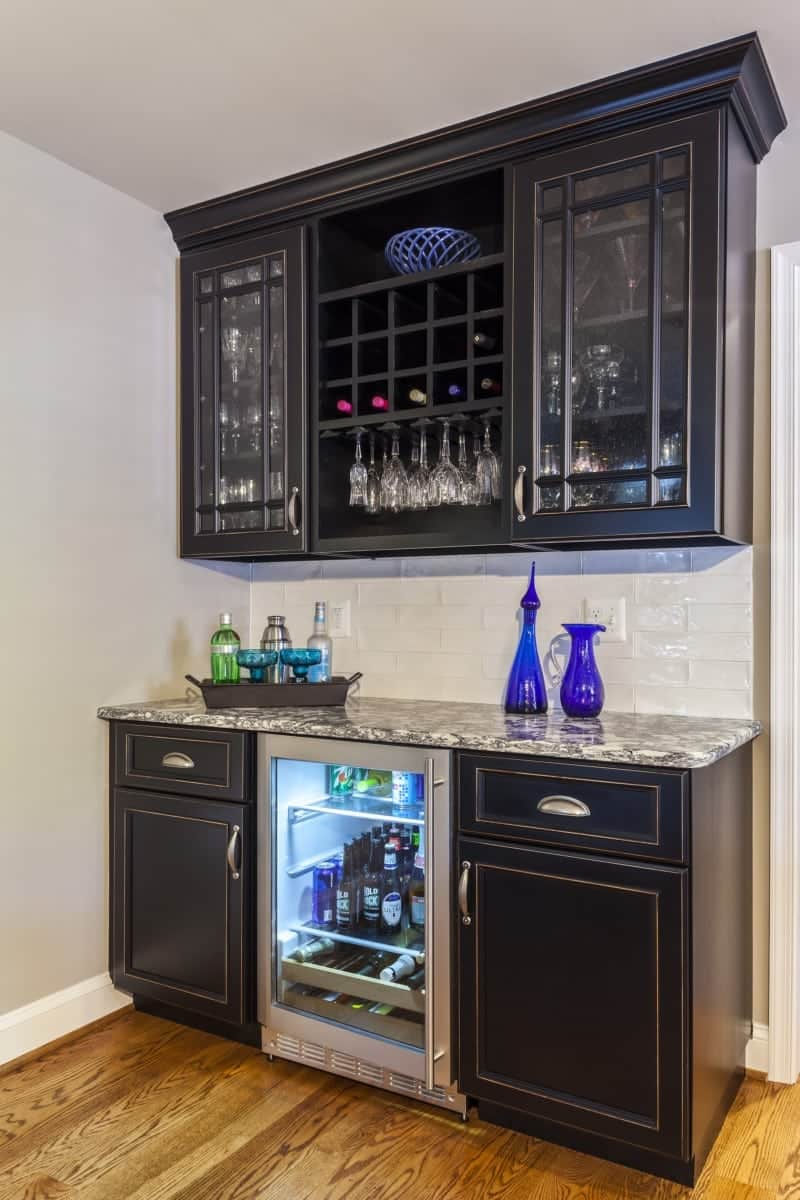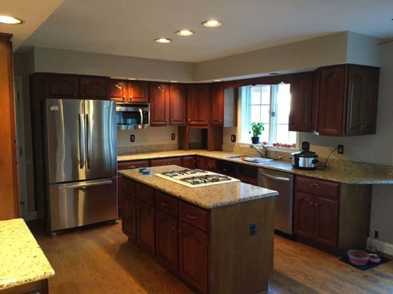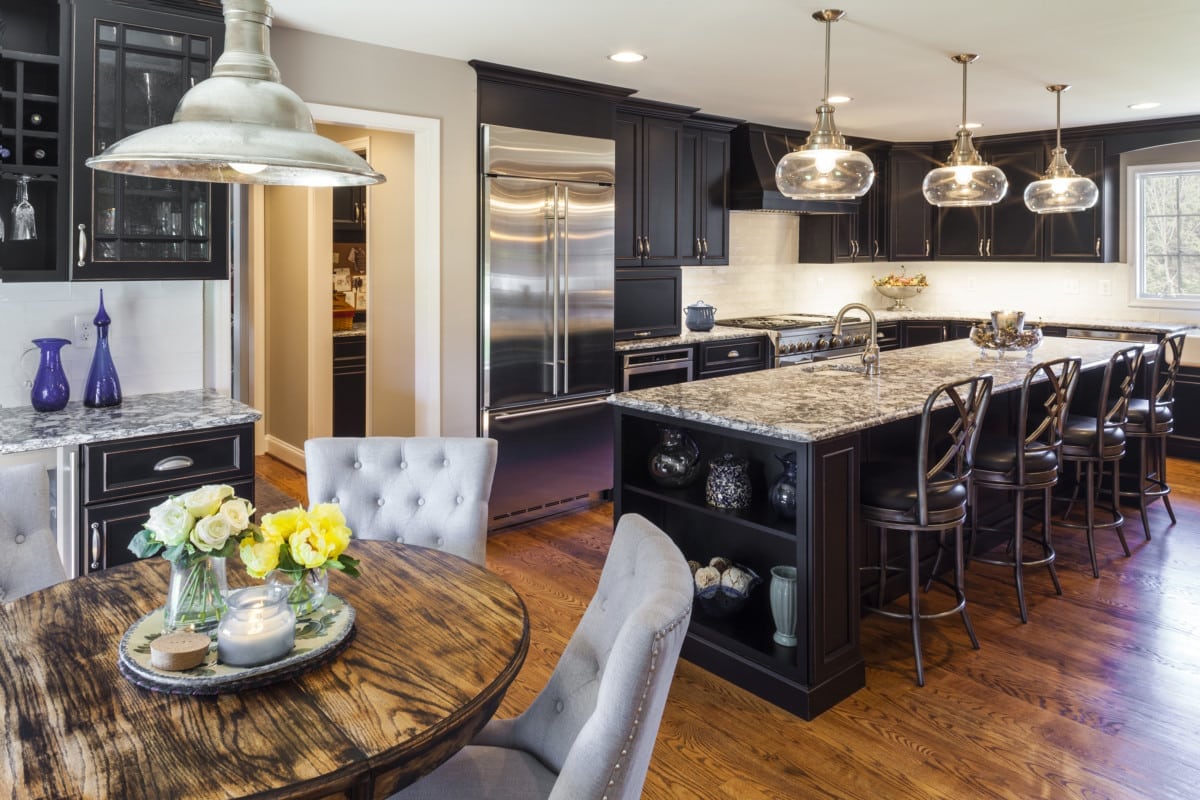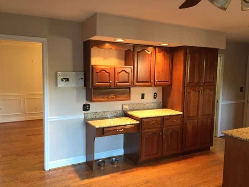 What they have now is a great design with access to the house through the new mudroom in lieu of the center of the kitchen. New cabinets grace the wall with an appliance garage and a commercial grade GE Monogram 48″cook stove/oven and refrigerator. They incorporated a 10′ island and replaced the smaller island, turning it in the opposite direction. The wall to the dining room was removed and the area was created into an eating area and beverage center. The new dining room, twice the size of the old, was added by removing a knee wall separating the breakfast area that was adjacent to the kitchen, to make the kitchen an open, expansive space.